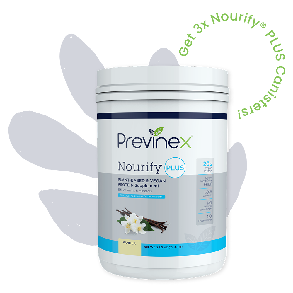 The Previnex® 7-Day Detox includes 3 Nourify® PLUS canisters of your choice of vanilla, chocolate, or both, 1 bottle of Probiotic supplement, and 1 free Blender Bottle. This program removes harmful toxins from your body and helps put you on a path toward optimal health.